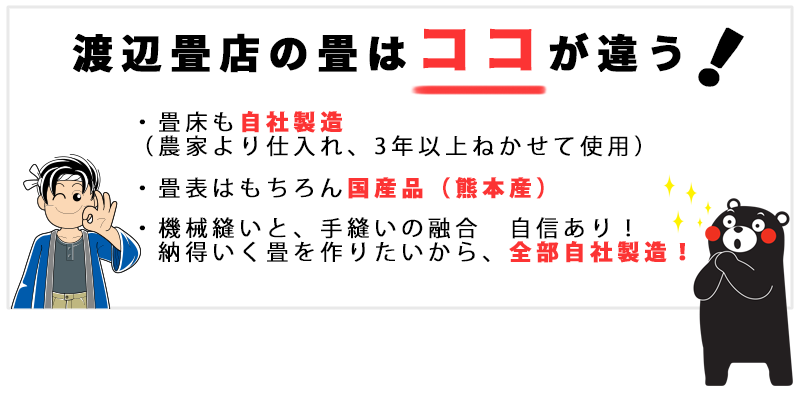 当店では次も仕事させて頂くつもりで、今でも手仕事にこだわりをもって、一針、一針、畳を制作しています。